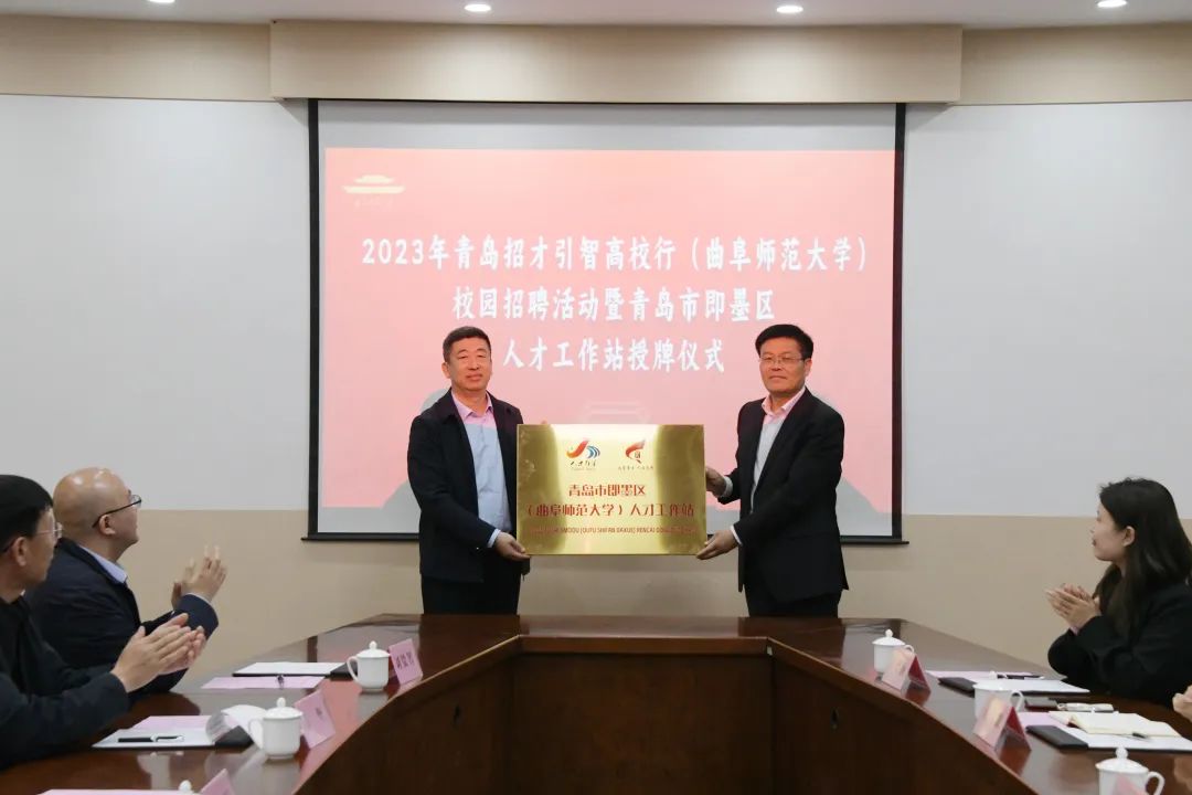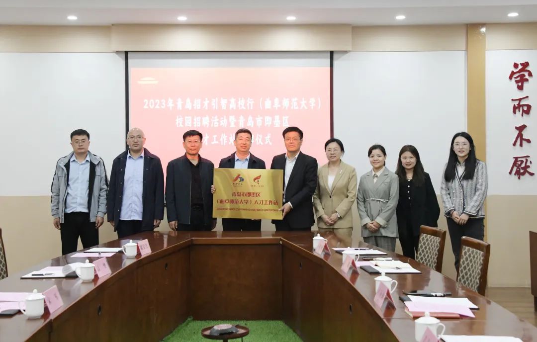 近日,“墨上花开·职等您来”校园引才直通车青岛市即墨区引才推介会暨人才工作站签约揭牌仪式在曲阜师范大学举行。曲阜师范大学党委副书记卢国强,即墨区人社局党组成员、事业单位人事服务中心主任宋军,曲阜师范大学学生工作处处长姜美颖,即墨区人社局副处级干部高坚,曲阜师范大学就业指导中心主任石璐,曲阜师范大学文学院、生命科学学院等相关负责人参加活动。仪式由姜美颖主持。