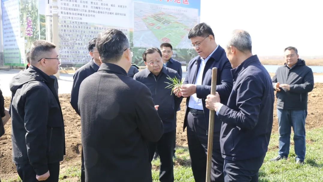 在蓝村街道,袁瑞先一行实地查看绿色增粮先行示范区、高标准农田项目和蔬菜仓储基地等项目,与相关负责人进行深入交流,详细了解项目规划设计、建设进度等情况。